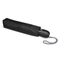 Stay dry in style with this compact three-stage Swiss Peak folding umbrella which has automatic opening and closing. It has an eight-panel, 190T showerproof pongee canopy with 53cm ribs. Other features include a windproof eight-rib fibreglass frame, a chromed metal shaft and stunning presentation in a Swiss Peak gift tube. Colours: Black.