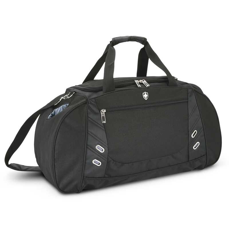 Swiss Peak have thoughtfully combined smart design with the needs of a busy lifetyle to create an outstanding multi purpose duffel bag which is ideal for long weekends or as a sports or gym bag. It is manufactured from a combination of 600D and 1680D polyester and it's many features include a large main compartment with a U shaped zip opening, a side entry shoe compartment with an air vent, an adjustable shoulder strap, a unique water bottle holder and a zippered side pocket. Colours: Black