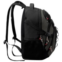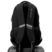 The VECTOR Backpack is a sleek backpack with S-curve ergonomic straps. For safety at night it has reflective trim on front and back straps. It is perfect for students, professionals and travelers. Colours: Black/Grey. Dimensions: 34cm W x 27cm D x 50cm H, 45 Litres.