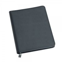 A4 Compendium in durable imitation leather. Features zippered closure, internal gusseted pocket, internal zippered pocket, business card holders, pen loop, and white lined pad which inserts from the top. Pen not included. Colours: Black. Dimensions: 275mm(w) x 345mm(h) x 30mm(d)