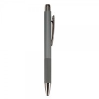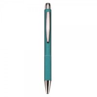 Recycled aluminum ball pen. Click action. Coloured rubberized aluminum barrel. Metal silver clip, UV gunmetal plated trims. Colours: Black, Blue, Green, Grey, Red. Dimensions: 139 (h)mm x 11.5 (dia) mm.