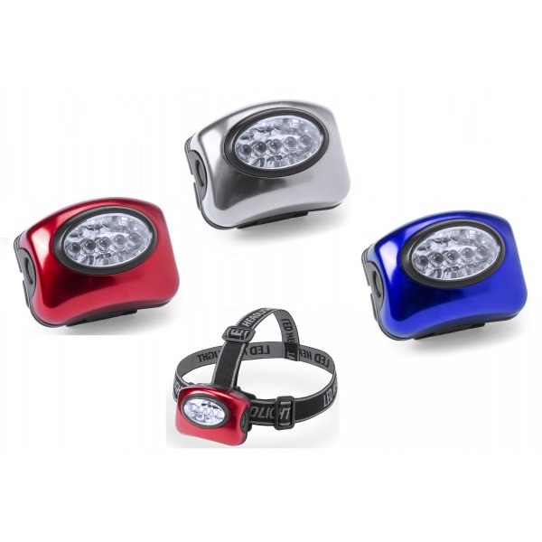 5 LED flashlight with three lighting modes. Colours: Blue, Silver, Red. Dimensions: 6 x 4.5 x 3.8 cm.