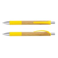 Retractable ballpoint pen with a natural bamboo barrel, a soft-touch grip and shiny chrome accents. It has a blue refill with 1000 metres of German manufactured Dokumental ink and it can be presented in an optional pen sleeve. Colours: White, Yellow, Orange, Red, Bright Green, Dark Green, Light Blue, Dark Blue, Black. Dimensions: dia 11mm x L 142mm x 16mm (includes clip).