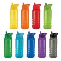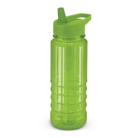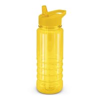 Classic 750ml drink bottle that is manufactured from Tritan, which is odour-resistant and BPA-free. It has a secure screw on lid which has a carry handle and a flip out drinking valve with a straw. Triton - Colour Match features coloured translucent bottles with a matching translucent drinking spout and solid colour polypropylene lids. This product is not dishwasher safe and handwashing is recommended. Colours: Yellow, Orange, Red, Bright Green, Dark Green, Light Blue, Dark Blue, Purple, Black. Dimensions: dia 75mm x H 235mm.