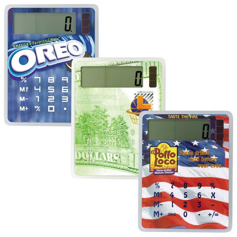 EXCLUSIVE DESIGN Create your own design by placing your own digital colour logo. Solar powered with button battery backup. Add a huge imprint on the back of the calculator for $0.45(G)/pc. Individually packaged in a white box. Colour/s: Clear Dimension: 77mm w x 100mm h