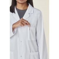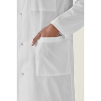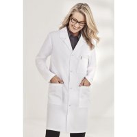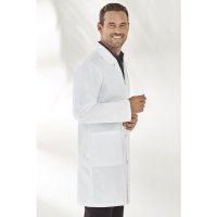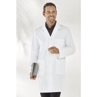 155gsm longer 3/4 length with notched collar and back hem vent. Chest pocket with pen line and two front pockets at hip. Suitable for general pathology and nuclear medicine industry. Colours: White. Sizes: XS - 3XL, 5XL.