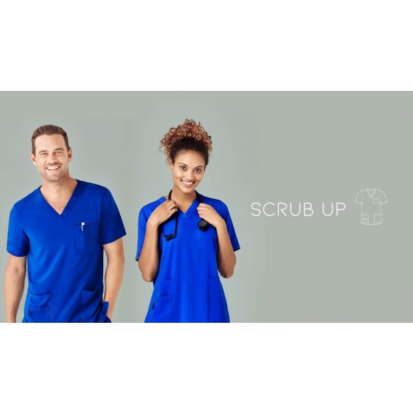 65% polyester, 35% cotton scrubs tops