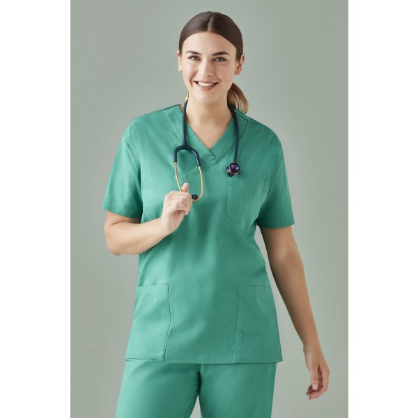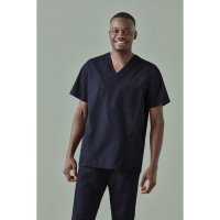 Unisex reversible scrubs designed specifically for commercial laundromats. Features chest pocket and back pant pocket on both sides of the garment. Double sided colour coded size pips and RFID chip placement suitability. All trims and fabric suitable for most industrial washing processes. Colours: Surgical Green, Midnight Navy, Dark Blue, Black. Sizes: XXS - 6XL