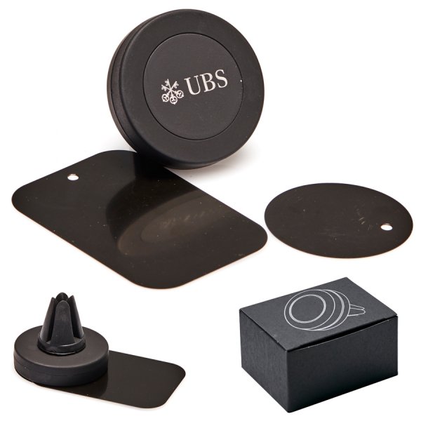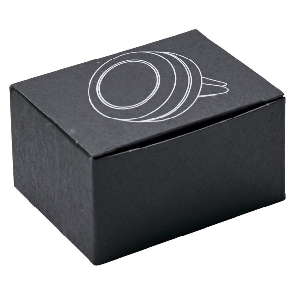 This mount fits easily into most car vents and has a powerful magnet built in. Each mount comes with two adhesive mounting plates to attach to your smart phone, one circle (40mm d) and one rectangle 45mm w x 65mm h) shaped plate. Each mount engraves to showcase stunning mirror finish decoration. Individually boxed in black matte gift box with silver line drawing design.
