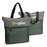 Sophisticated tote bag which is manufactured from a combination of on-trend heather style 300D polyester with a 600D polyester back panel. It has a distinctive front pocket with an eye-catching patterned finish and a zippered closure. Other features include strong woven carry handles, a secure zippered top closure, smart woven zipper pulls and a base gusset for added carrying capacity. Colours: Grey. Dimensions: H 390mm x W 440mm (excludes handles). Handle Length: 50mm.