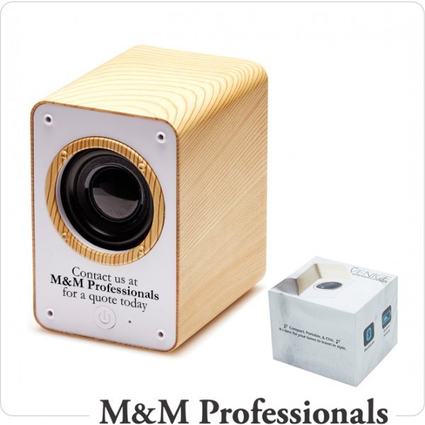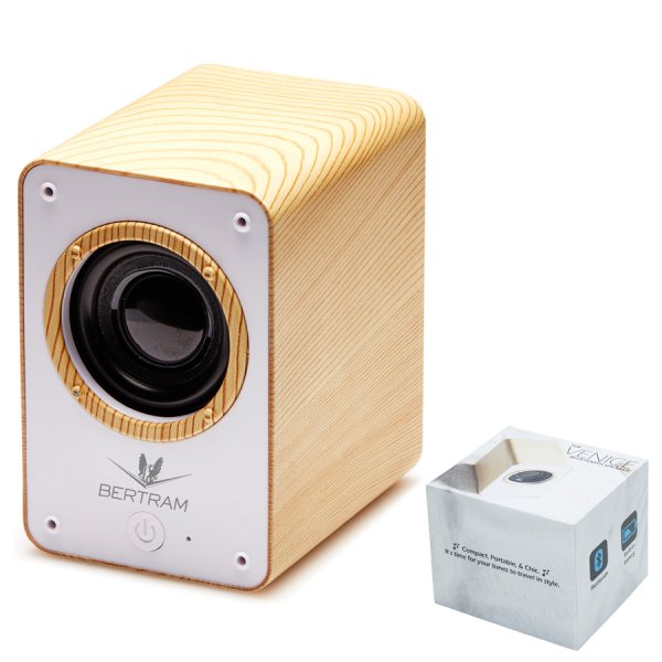 Compact, portable and chic. It's time for your tunes to travel in style. Designed to resemble an old Venice surfer wagon these compact speakers will add a bohemian vibe to any of your gatherings. Built with a 3-watt speaker and a rechargable 400mAh battery, and presented in a beautiful retail gift box. Colours: Wood/White. Dimensions: 80mm W x 90mm H x 60mm L.