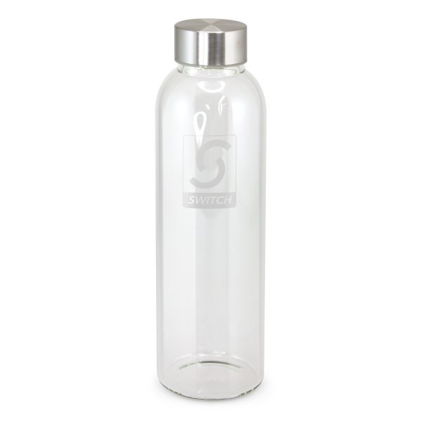 Deluxe 600ml borosilicate glass drink bottle which features a secure screw on stainless steel lid that can be laser engraved with a logo. Borosilicate is a lightweight glass that is exceptionally strong and shatter-resistant. Glass is a natural choice for a clean, pure taste and it offers a safe and eco-friendly alternative. This product is not intended to be used with carbonated or hot liquids. It can be presented in an optional gift tube. The bottle is not dishwasher safe and handwashing is recommended.