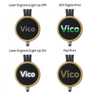 Light up Logo, Pad Print, 4CP Digital Print on cable retainer 20 x 20 mm (engraved), 28 x 28 mm (print)