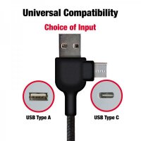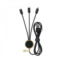 The Vico LED charge cable with its light-up branding will bring your logo to life. Providing a patented dual Type-C and USB-A input connector with Micro, Type-C and 6 Pin (iOS) output connectors, this cable delivers 2.4 Amp maximum output. The Vico is manufactured from recycled plastic bottles (rPET), bamboo, high quality 24 AWG copper, ABS and contrasting plated connectors. In addition, it is packed in a recycled kraft box that can be customised to further enhance your brand. Suitable for all mobile devices. Colours: Black, Silver, White. Dimensions: Cable Retainer: 34.5 dia. x 9.8 mm, Cable Length: 120 cm.
