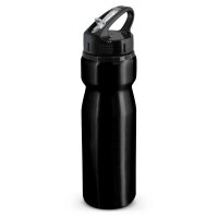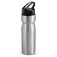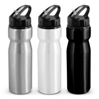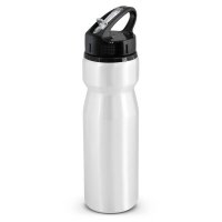 Smart BPA-free 750ml aluminium drink bottle which has a secure screw on lid with a flip out drinking valve and a carry handle. An optional black gift box is available on request. This product is not dishwasher safe and handwashing is recommended. Colours: Silver, White, Black. Dimensions: Bottle: Dia 72mm x H 260mm. Gift box: H 295mm x W 76mm x 76mm.