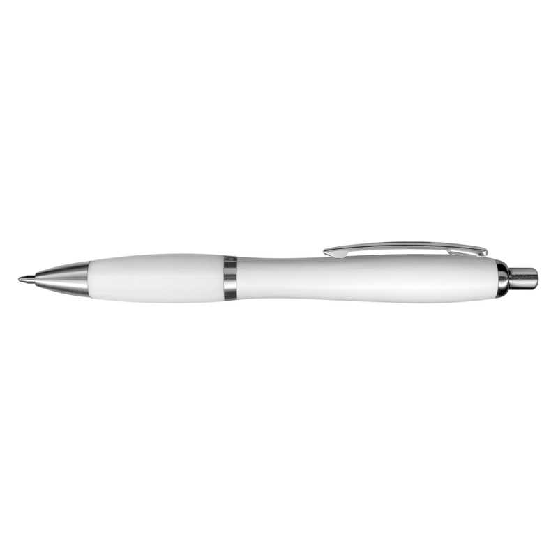 Retractable plastic and metal ball pen with shiny chrome trim. It has a black TRENDS large volume refill with 1800 metres of German manufactured DOKUMENTAL ink and a tungsten carbide ball for improved writing quality. Blue ink is available for an additional charge.