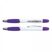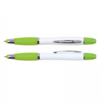 - Twist action ballpoint pen with white barrel, silver clip and matching colour grip