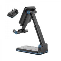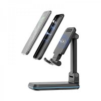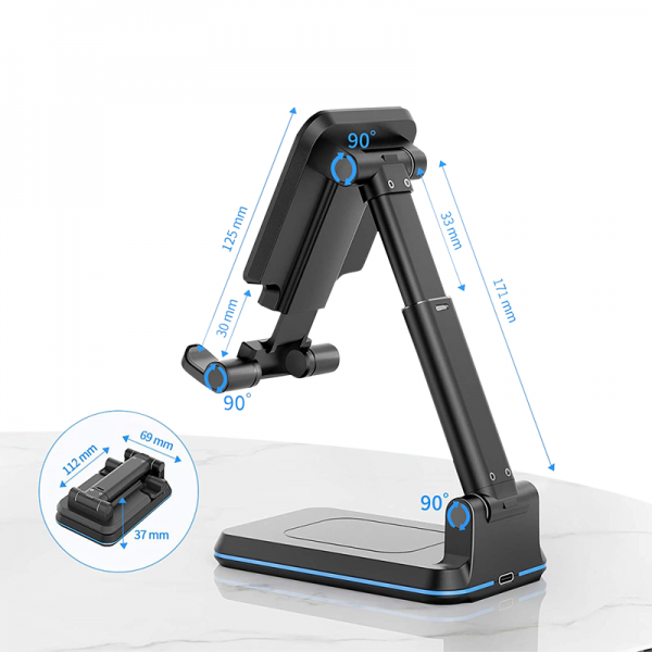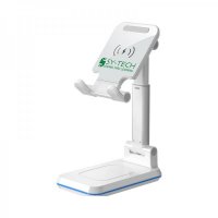 Wirelessly charge your smartphone and enjoy videos anywhere with this foldable phone stand. The Vulcan-Q wireless charging desktop stand, with Foreign Object Detection protection and a footprint smaller than most smartphones, is ideal in the office and when travelling. Suitable for use with smartphones or tablets and offering adjustable heights, multiple viewing angles, and non-slip silicone pads on both the base and phone cradle. Compatible with any smartphone or device meeting the Qi wireless charging standard (5W, iPhone up to 7.5W, Samsung up to 10W). Option up to the Q2 which has an additional charge plate on the base. Includes Type-C charge cable and user manual. Colours: Black, White. Dimensions: 110 x 69 x 170 mm (max height), 113 x 69 x 39 mm (flat packed).