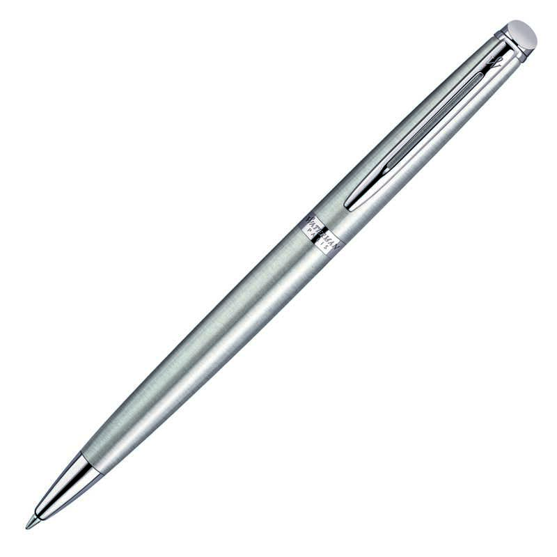 Promotional pens don't come any more stylish and classy than the Waterman Hemisphere Ballpoint Pen. May be engraved in silver colour with your brand or personalisation, or pad printed with your logo on the cap. Equipped with quality engineered blue twist action, retractable ballpoint this Stainless Steel Waterman precision writing instrument with chrome trim will gild your gift with timeless elegance.