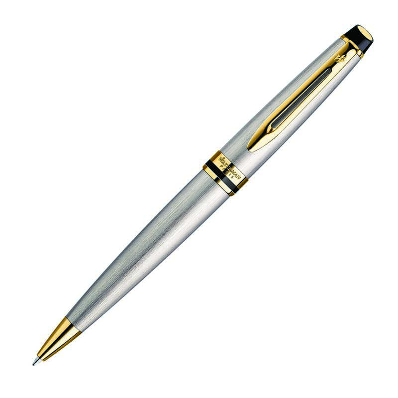 For a top class professional promotion, why not choose the Waterman New Expert Ballpoint Pen? Laser engraved in gold finish, or pad printed to cap or upper barrel, this executive pen with twist action retractable blue ballpoint is beautifully presented in stainless steel with gold trim.