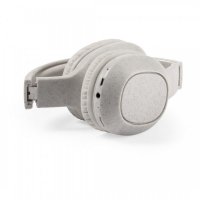 Nature line, headphone set with Bluetooth® 5.0 connectivity. In wheat straw, to encourage the use of natural raw materials and reducing contaminant emissions. Ergonomic ear pads in PU leather, built-in control panel in the headset, Micro SD card slot, hands-free function and FM radio. 3,5mm jack cable and rechargeable via micro USB cable included. Presented in an attractive, eco design biodegradable box. Colours: Natural. Dimensions: 17 x 18.5 x 7.5 cm.