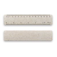 Trendy 15cm wheat straw ruler manufactured from 30% Wheat straw and 70% ABS. It features mm/cm/inches black printing on one side and a scale ruler shape for sturdiness. Colours: Natural. Dimensions: W 29mm x L 170mm x H 4mm.
