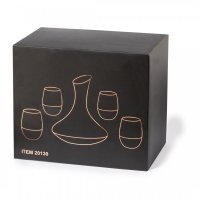 1.8 litre capacity wine decanter, with stylish design and anti dripping neck. Hand wash only. Another option available: elegant wine set made of glass, with a delicate and innovative gradient rose coating. A design gift that includes 4 glasses of 500 ml and a decanter of 1.8 litre (stock code: M20130). Presented in an exclusive individual black design box. Colours: Clear. Dimensions: 28 x 20 cm, or 30cm x 20cm x 26cm.