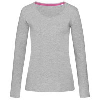 Fitted long sleeve T-shirt for women, with fashionable length made of a soft and sleek cotton-elastane-blend with wide V-neck drop and contrast neck tape. Colours: Black, Grey, Marina Blue, Pink, White. Sizes: S, M, L, XL.