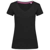 Modern T-shirt for women, with fashionable length and wide V-neck drop made of extra smooth combed ring-spun cotton. Colours: Black, Navy, White. Sizes: S, M, L, XL.