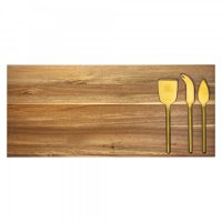 Luxury style wooden cheese board with gold metal plated cheese knife set. The perfect housewarming gift. Natural wood material which produces unavoidable variances in the grain pattern, colour and branding. Colours: Natural. Dimensions: 503mmW x 222mmH x 13mmD.